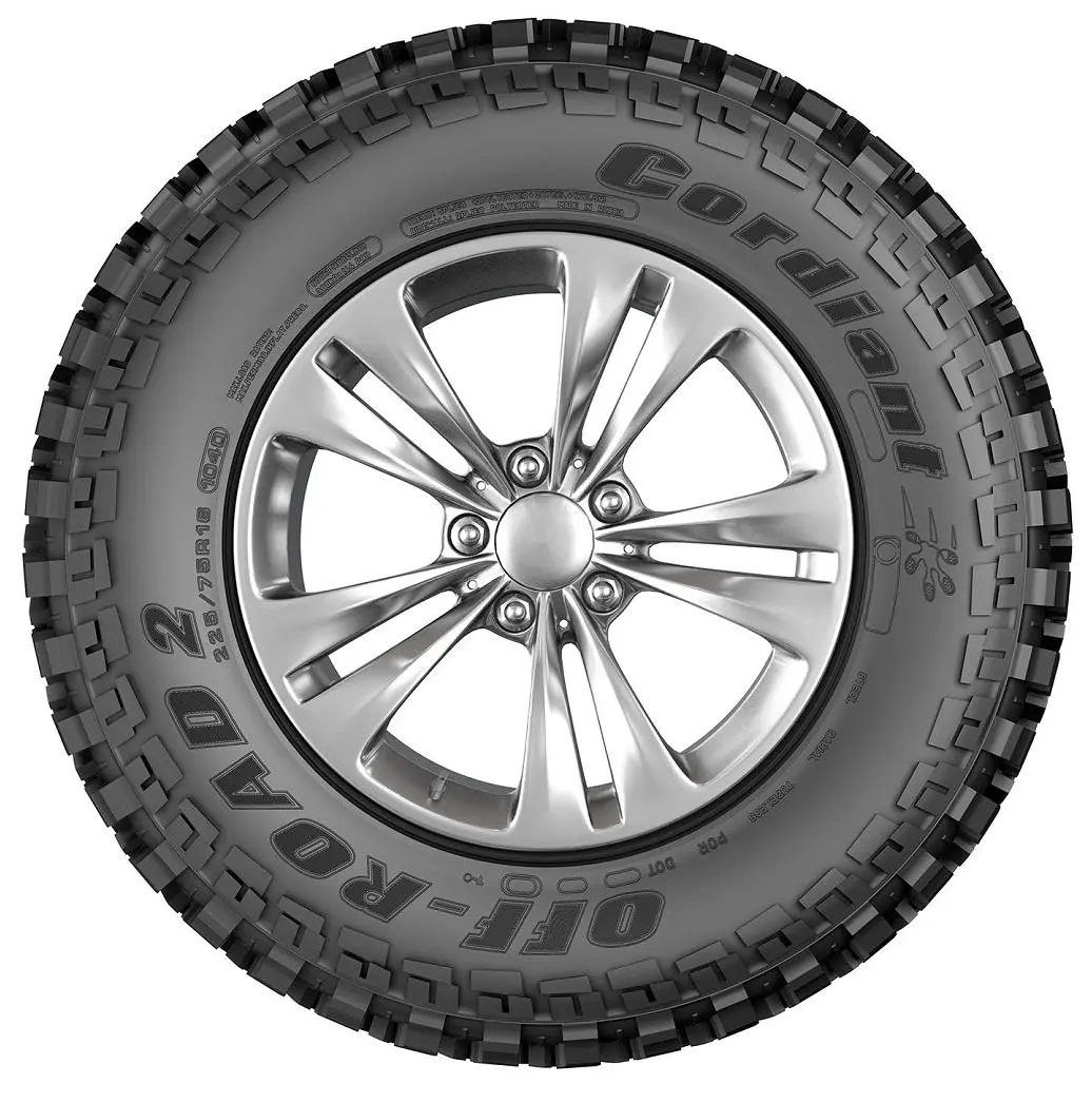 Боковые грунтозацепы Cordiant Off-Road 2 более крупные, в виде разновысотных выступов. Они выполняют как защитную функцию, предотвращая повреждение каркаса о препятствия (камни, сучья), так и повышают тягово-сцепные свойства на бездорожье. Также, на ряде размеров линейки Cordiant Off-Road 2, глубина рисунка протектора увеличена, по сравнению с шиной предыдущего поколения.