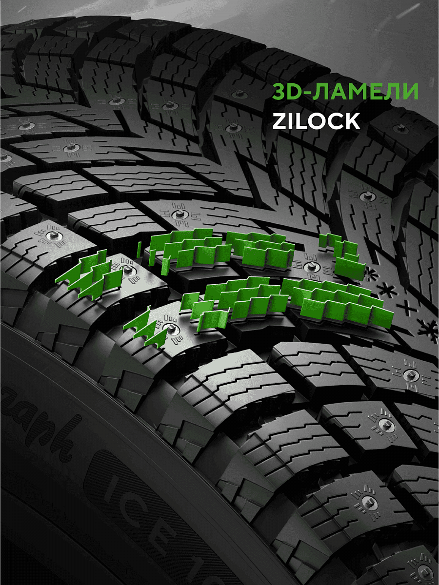 Предсказуемое торможение и стабильное управление достигается за счет двойной ошиповки DoubleBite и протектору с 3D-ламелями ZiLock. Благодаря специально разработанной резиновой смеси GC Mix управляемость сохраняется даже при низких температурах. Шипованные шины Ikon Autograph Ice 10 созданы для тех, кто ценит контроль и стабильность в зимних условиях. Прочная и надежная двойная ошиповка DoubleBite в сочетании с инновационной формой сердечника обеспечивают надежное сцепление как при разгоне и торможении, так и в поворотах на льду и снегу. Усиленная фиксация шипов значительно продлевает период эксплуатации шин. Качественные материалы повышают износостойкость шины и сохраняют надежное сцепление