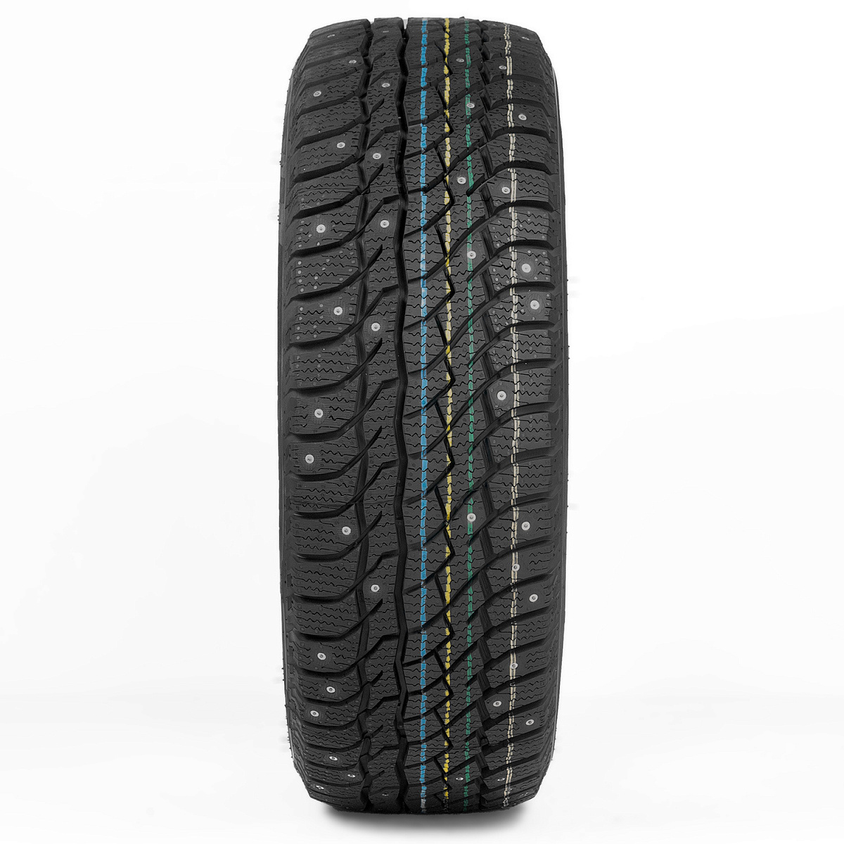 - Не симетричный рисунок протектора и широкое расположение шипов обеспечивает высокую износостойкость и заметно снижает шумообразование.