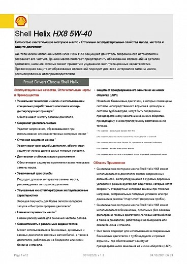 SHELL Helix HX8 5W-40 A3/B3;A3/B4 1л