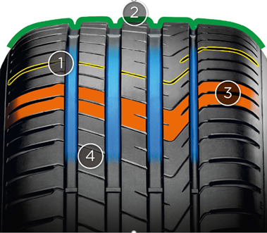 5. ОСОБЕННОСТИ - Новый состав резиновой смеси «FULL SILICA» в совокупности с четырьмя широкими продольными каналами;